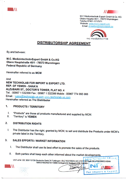 New Technolab is an exclusive distributor to represent MCM products in the territory of Yemen